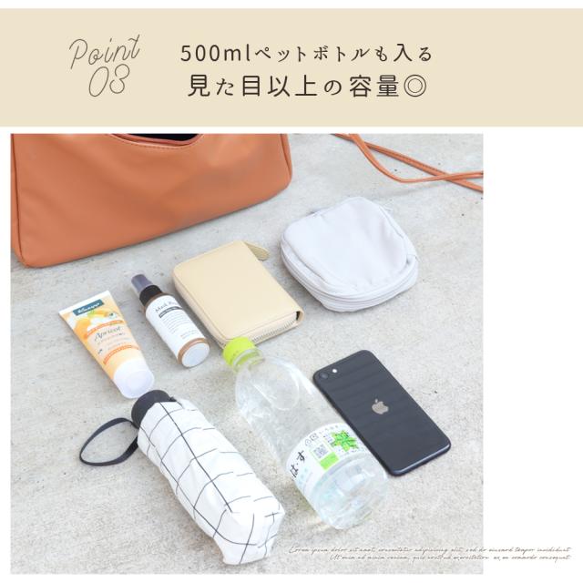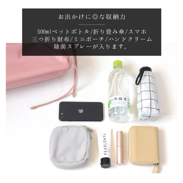 500mlペットボトルやメイクポーチもしっかり入る容量◎