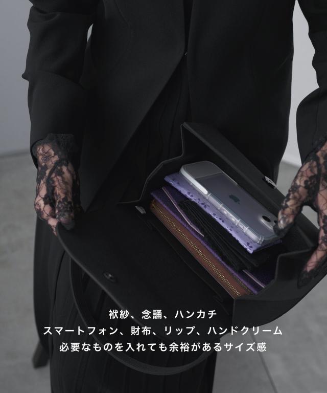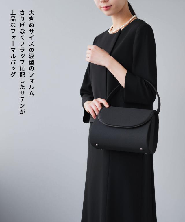 涙型のコロンとしたフォルムが可愛らしく、ディティールがシンプルな年代や立場を問わず使いやすいデザインのフォーマルバッグ。葬儀、通夜を始めとした冠婚葬祭に。