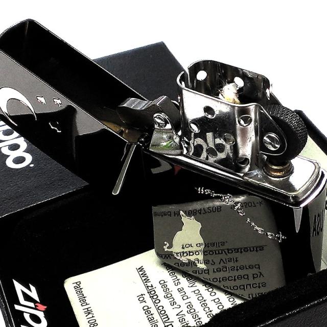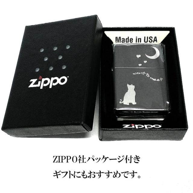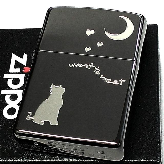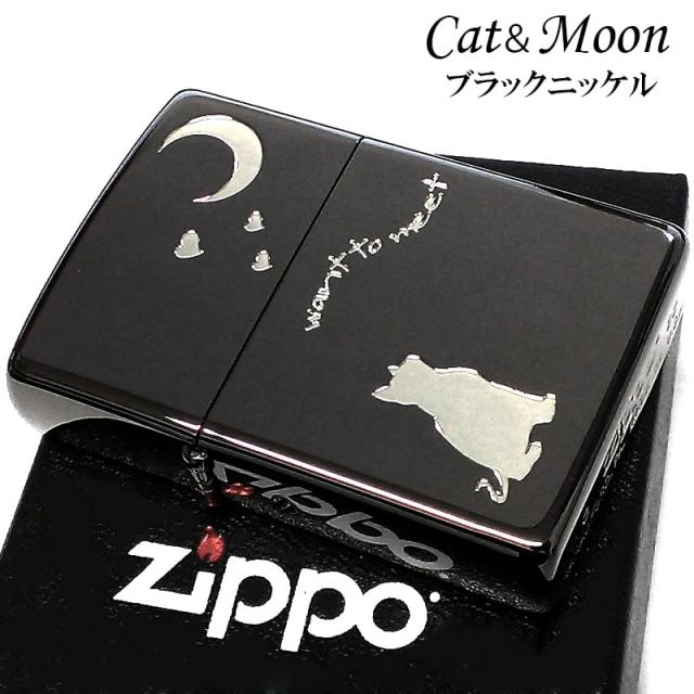 ZIPPO ライター 猫 ジッポ CAT & MOON 可愛い ブラックニッケル 月 おしゃれ 三日月 ネコ エッチング ハート 女性 レディース
