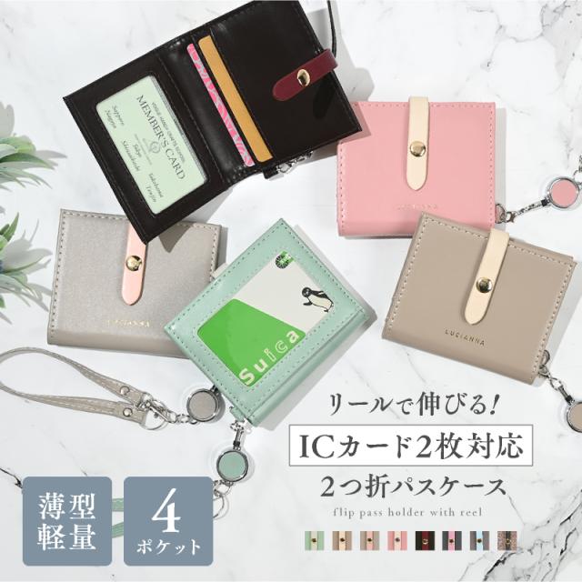 パスケース ICカード 2枚 定期入れ レディース リール付き メンズ キーケース おしゃれ 縦型 ケース 通勤 通学 高校生 軽量 学生 子ども メール便 送料無料