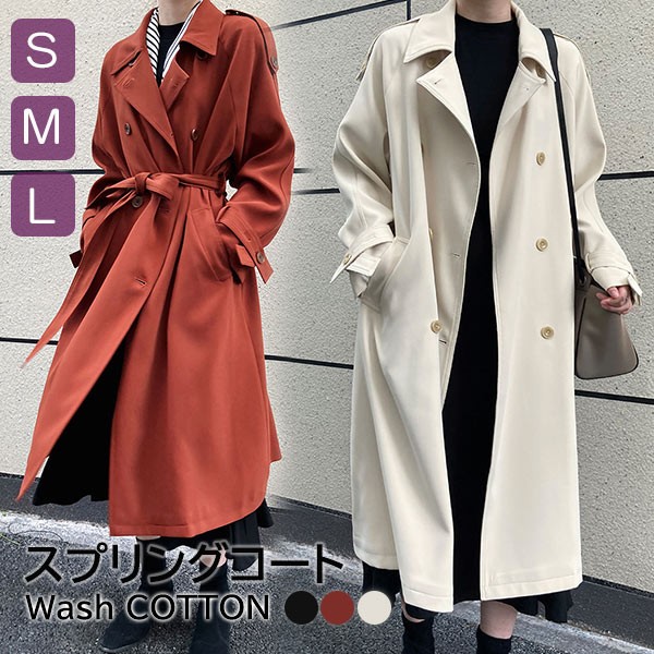 スプリングコート トレンチコート レディース ベルト付き ロングコート ミモレ丈コート ドロップショルダー ボタン隠し ベージュ レンガレッド ブラック 黒 dg134x1x1l9