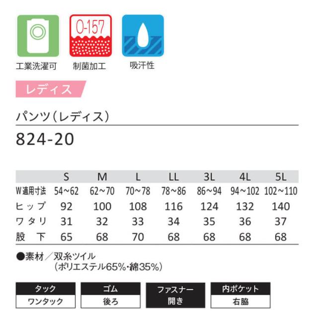 食品工場白衣 パンツ レディス 824 カゼン KAZEN フードファクトリー 暑熱環境向け 制服 ユニフォーム