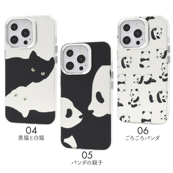 スマホケース iPhone13Pro用 ねこ ぱんだ モノトーンデザイン 携帯ケース おしゃれ 背面ケース 背面保護 iPhoneケース シンプル かわいい 上品 保護カバー スマホカバー お洒落 携帯カバー 猫 にゃんこ パンダ panda 可愛い カジュアル バックカバー SoftBank au docomo