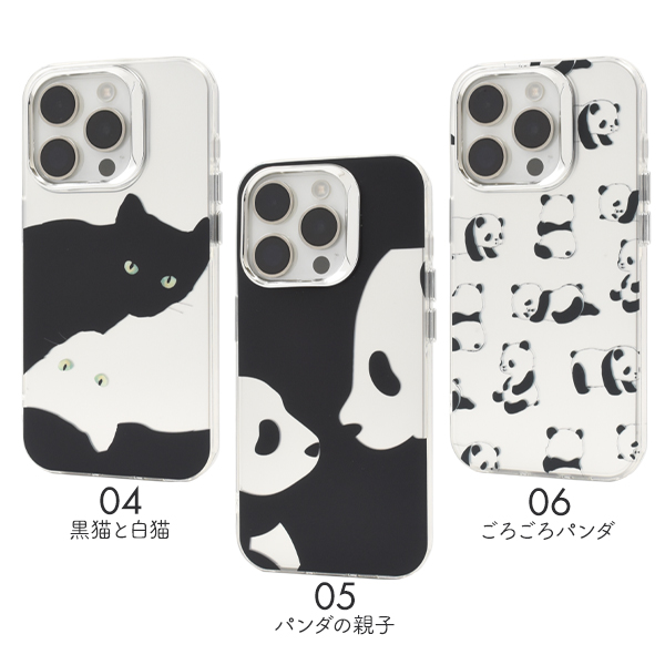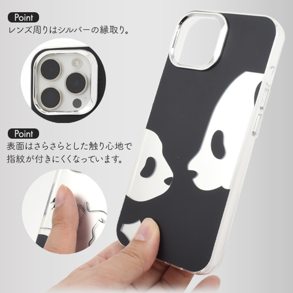 スマホケース iPhone15Pro用 ねこ ぱんだ モノトーンデザイン 携帯ケース おしゃれ 背面ケース 背面保護 iPhoneケース シンプル かわいい 上品 保護カバー スマホカバー お洒落 携帯カバー 猫 にゃんこ パンダ panda 可愛い カジュアル バックカバー SoftBank au docomo