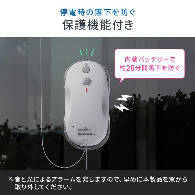 ●停電時の保護機能を搭載し、電源供給が止まっても内部バッテリーにより約20分間は窓に張り付いた状態をキープします。
