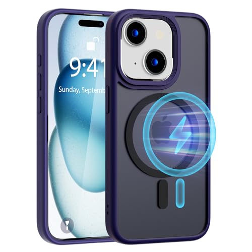 Siaincsy iPhone15 / 14用 ケース マグネット搭載 米軍規格・ワイヤレス充電 マグセーフ対応 半透明 マグネット保護ケース耐