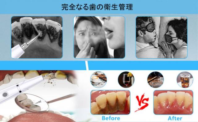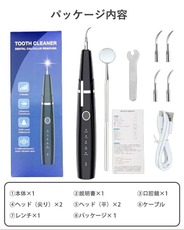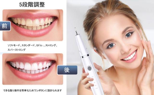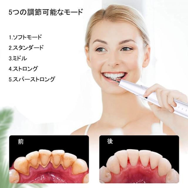 歯石取り 超音波口腔洗浄器 超音波スケーラー 超音波歯クリーナー 電動歯ブラシ 高周波振動 歯垢 黄ばみ ヤニ取り 口腔ケア 歯茎 5段モード LEDライト USB充電 クリーニングキット 口臭防止 予防