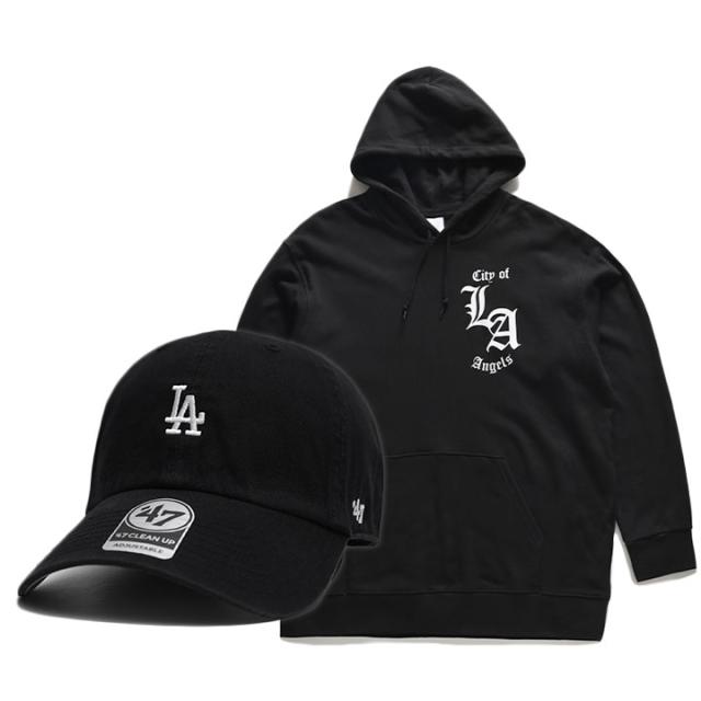47 LA ドジャース キャップ コーデセット 着こなしセット ローキャップ 浅め 長袖 フォーティーセブン ACEFLAG エースフラッグ パーカー メンズ 春秋冬用 黒 大きいサイズ b系 ストリート系 コーデ AF-SE-PA-081