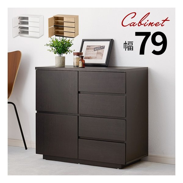 萩原 (ハギハラ) キャビネット RCC-1490 幅79×奥行39×高さ71cm ダークブラウン RCC-1490DBR