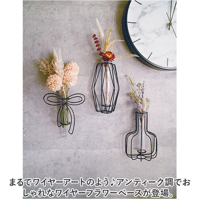 | 商品説明 | ・まるでワイヤーアートのよう♪アンティーク調でおしゃれなワイヤーフラワーベースが登場。 【ニュアンスを愉しむワイヤーアート】 ・まるでワイヤーアートのよう♪置くだけでニュアンス感が生まれ空間をおしゃれに魅せてくれる。 【気軽に飾れる一輪挿しタイプ】 ・ナチュラルな雰囲気なので、いろんな空間にマッチ。気軽にどこにでも飾れる一輪挿しタイプ。 【壁掛けも置き型もOKの2WAY仕様】 ・ワイヤーアート部分にさりげなく吊り下げリングを配置。壁掛けも置き型もOK。 ・※デザインにより置き型ができないものもあります。 【試験管は取り外し可能。楽々水替え】 ・お花を入れる試験管は取り外し可能。水替えも楽々&洗えるので清潔さをキープできる◎ 【マットな質感&アンティーク調】 ・ツヤを消したマットなワイヤーと、華奢な作りのアンティーク調がおしゃれポイント。 【飾り方いろいろ☆オブジェとしても】 ・生花はもちろん、ドライフラワーやグリーンを挿すのもオススメ。オブジェとして置くのもGOOD◎ 【お祝いやちょっとしたお礼にも】 ・お部屋に馴染む、ナチュラルテイストで高級感のある一品。引っ越し祝いや贈り物にも最適。 |