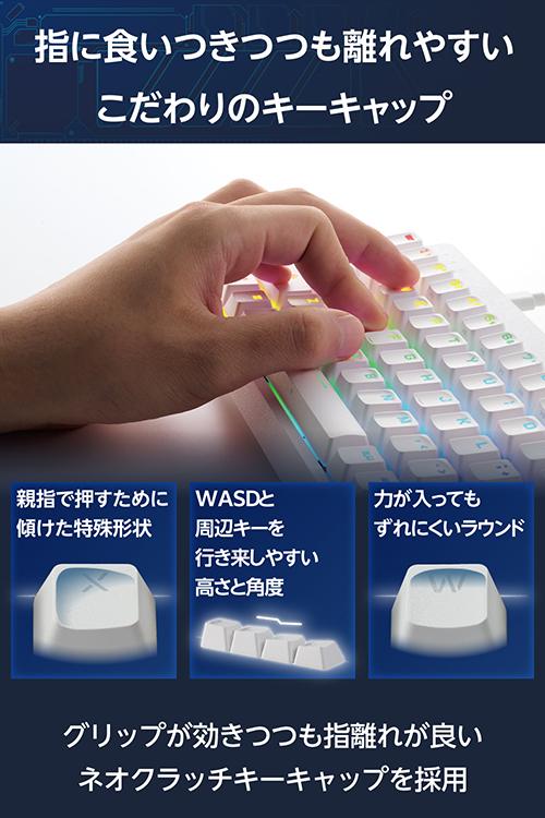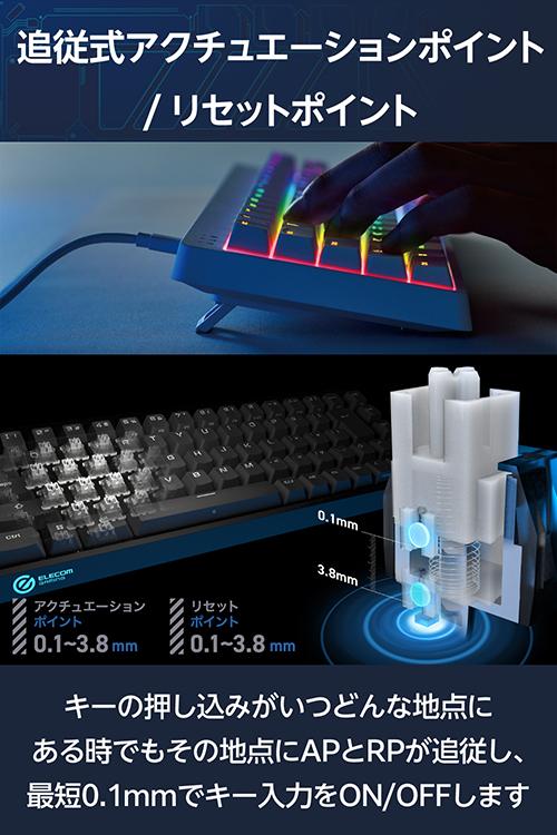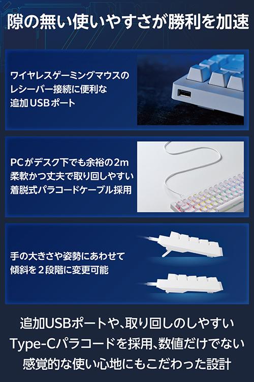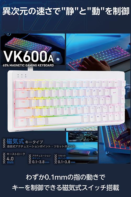 【在庫処分・お買い得!】 エレコム ゲーミングキーボード VK600A 有線 着脱式 磁気式アナログ検知スイッチ搭載 テンキーレス 65%サイズ ホワイト┃TK-VK600AWH