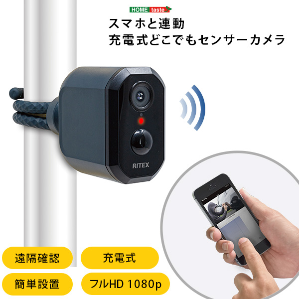 スマホと連動 充電式どこでもセンサーカメラ (ブラック) ホームテイスト SH-17-ML18-BK【送料無料】 (SH17ML18BK)