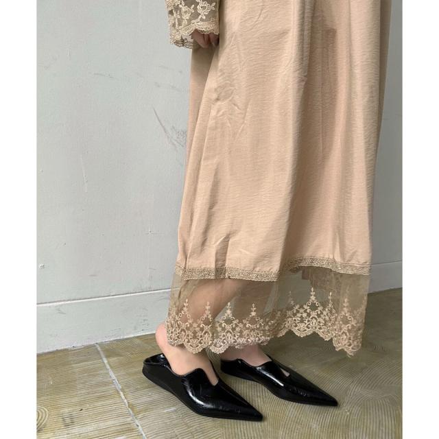 肘、袖口、裾部分はチュールレースで透けていて儚げな抜け感をプラス♪