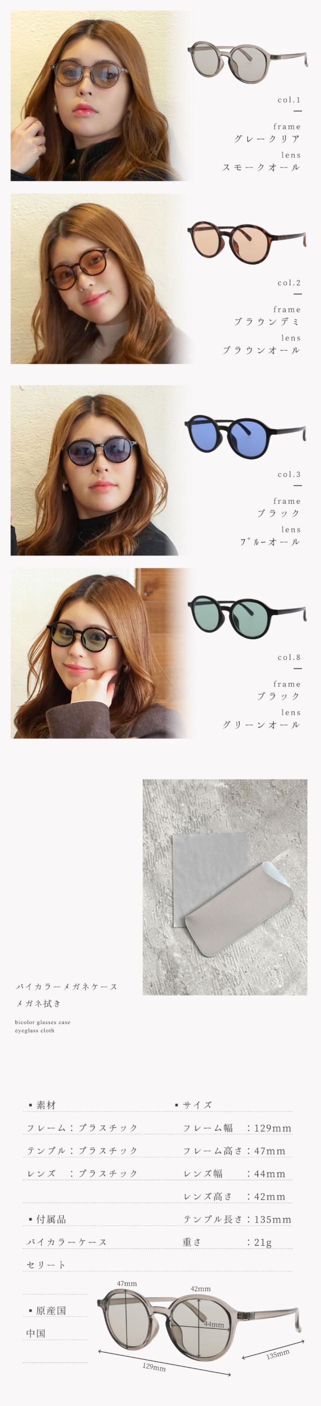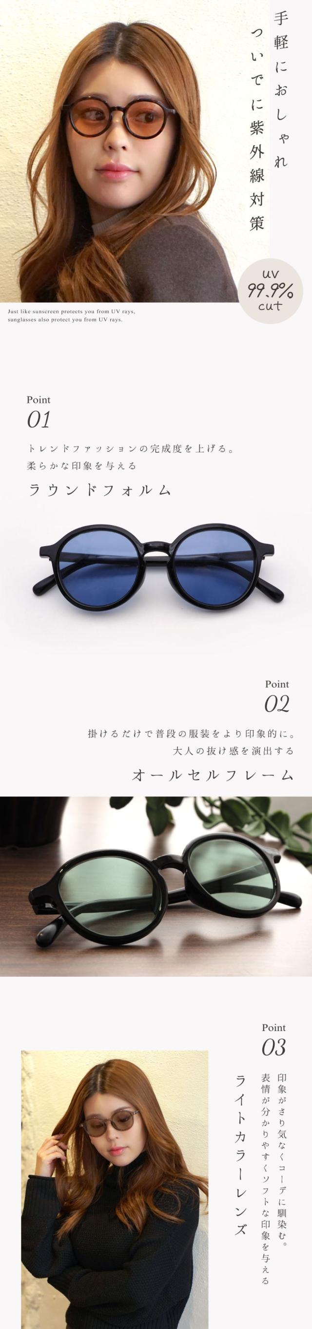 サングラス レディース おしゃれ uvカット 紫外線カット 鯖江企画 丸メガネ 薄い色 かわいい 専用ケース付き GG eyewear 5024