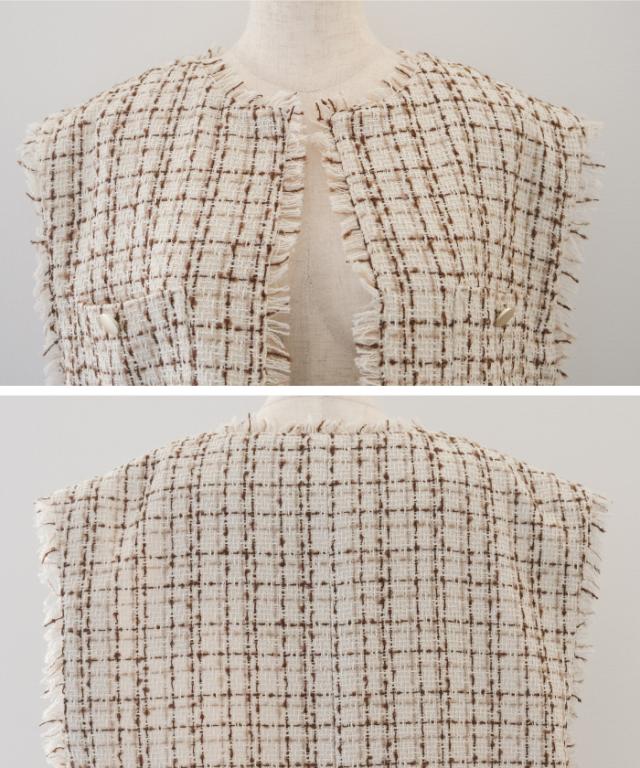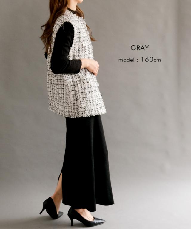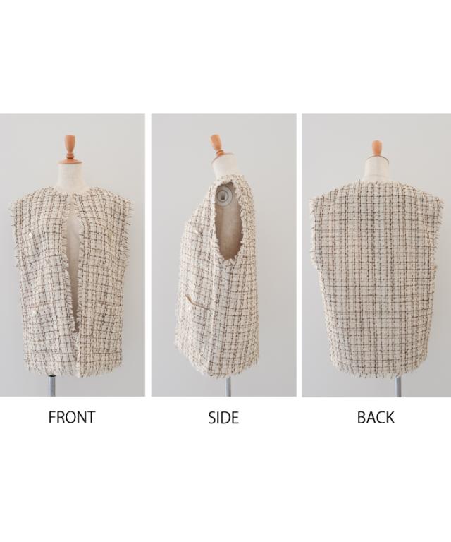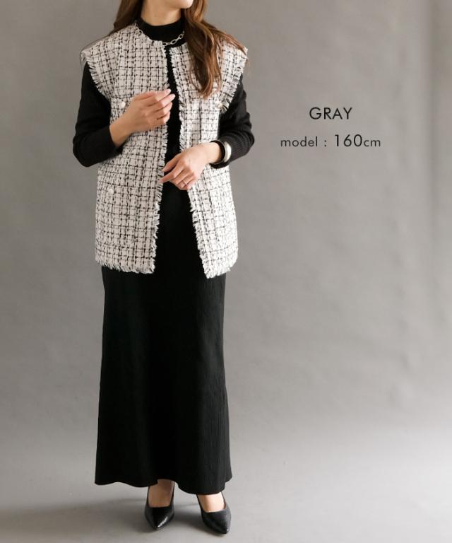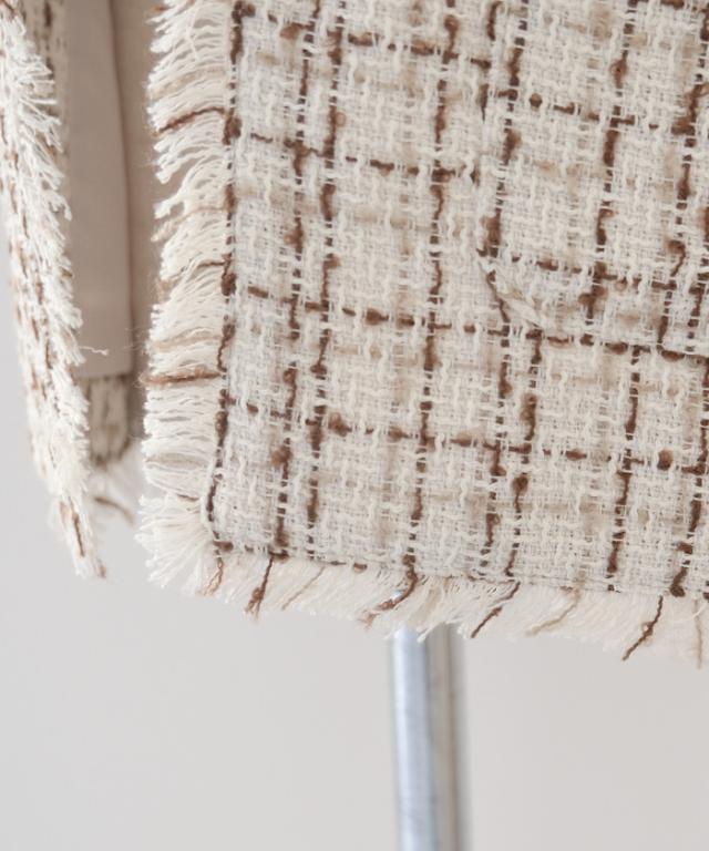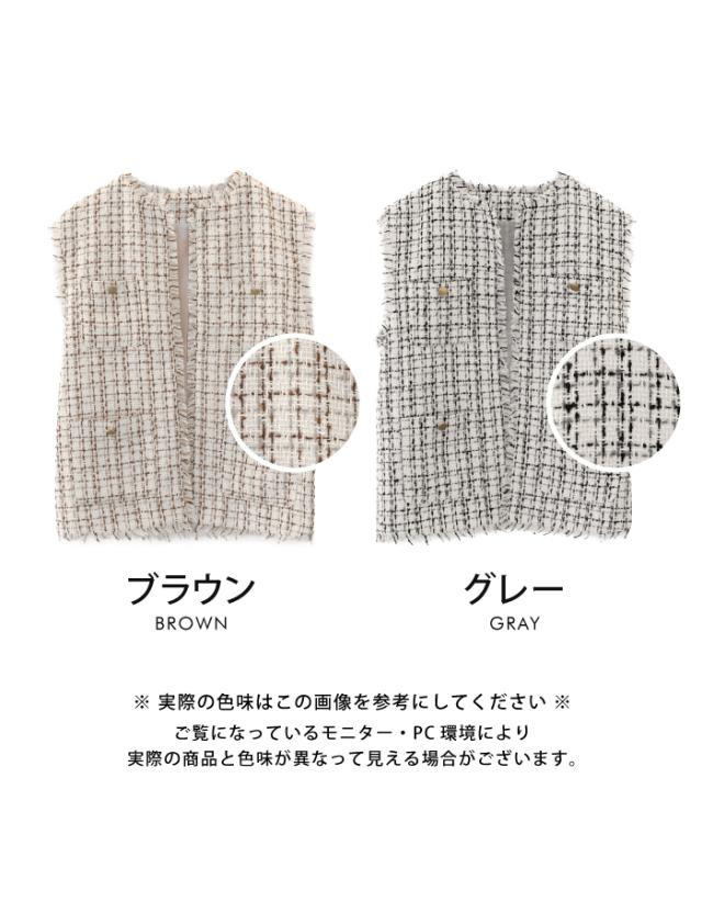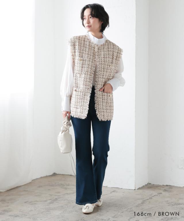 高見えするツイード素材がこなれた印象のフリンジベスト。