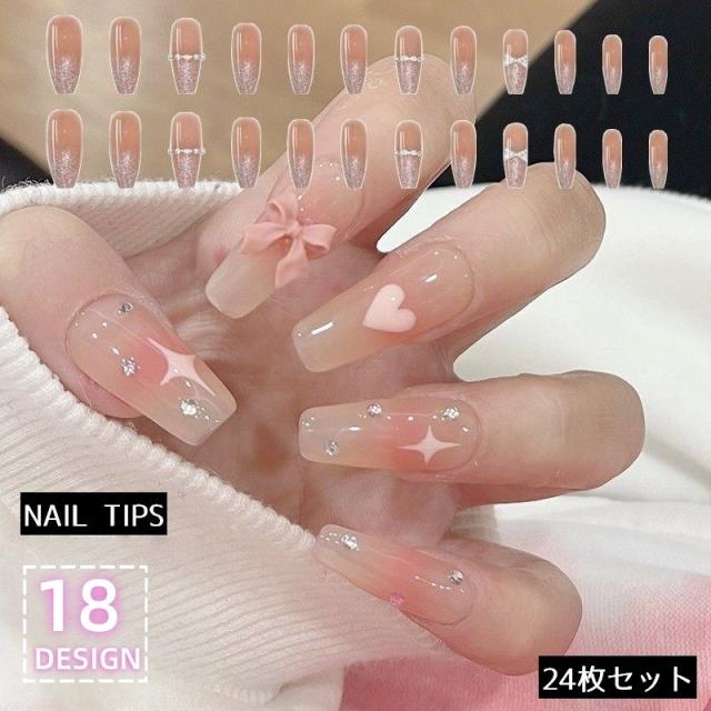 ネイルチップ つけ爪 24枚セット 12サイズ 貼るネイル ラインストーン リボン ハート 蝶 花 ラメ かわいい おしゃれ