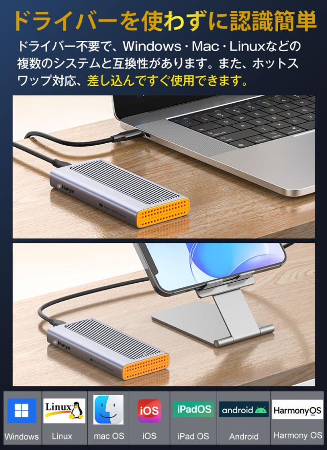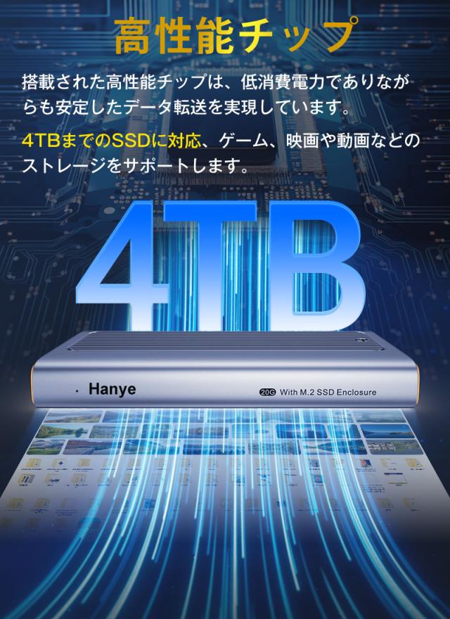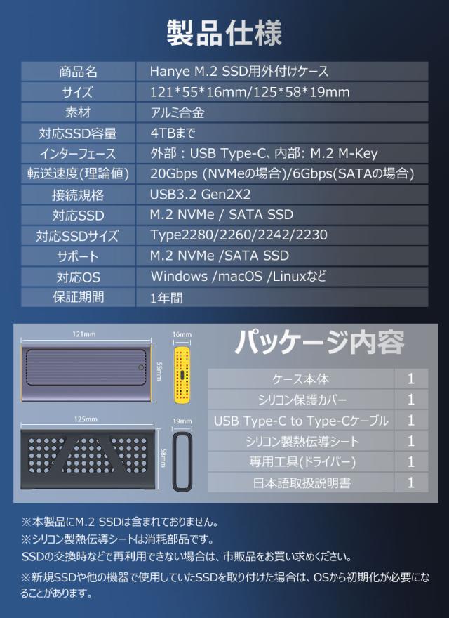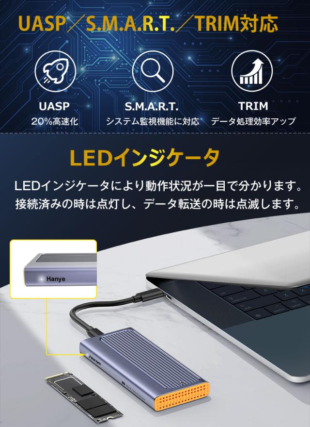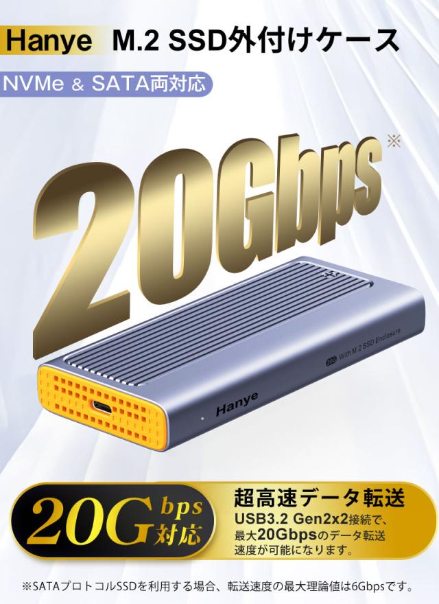 Hanye M.2 SSD 外付けケース NVMe/SATA両対応 USB 3.2 Gen2 M.2 SSD ケース 20Gbps高速転送 熱伝導シート付属 2230/2242/2260/2280 アルミ筐体 ネコポス送料無料 ポイント消化
