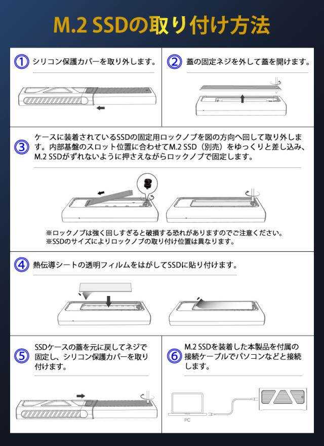 SSD 外付けケース筐体は、M.2 NVMe M Keyに適しています。