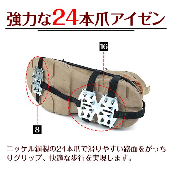 スノースパイク 靴底用 散歩 釣り用アイゼン 簡易スパイク アイゼン 24本爪 靴底 滑り止め 雪道 凍結路面 滑り止め 氷 雪 かんたん装着 アイススパイク 携帯用 雪対策 転倒防止 登山 トレッキング メンズ レディース