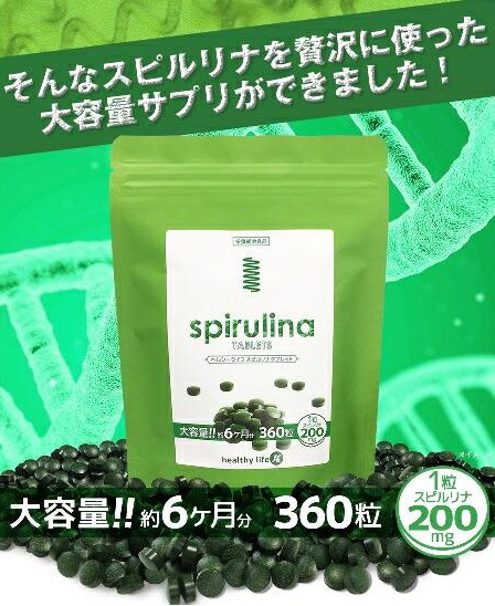 healthylife スピルリナタブレット(大容量約6か月分)【海外のモデルやセレブにも大人気!今超話題のスーパーフードサプリのスピルリナ粒】約360粒