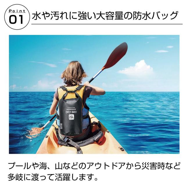防水バッグ(25リットル、30リットルを選択) ×1 防水バッグ用ショルダーベルト ×2 防水スマホケース ×1 防水スマホケース用ストラップ ×1 |