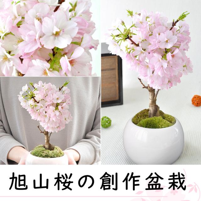 桜の創作盆栽 桜 盆栽 <洋風ホワイト鉢> 創作盆栽 数量限定 花芽付 旭山桜の盆栽 さくら 盆栽鉢 誕生日 プレゼント 女性 花 お祝い ギフト 男性 花見 春 さくら 桜の木 花見 入社式 就職祝い 入学祝 おうち花見 送料無料 2/1〜3/22の間で日時指定OK