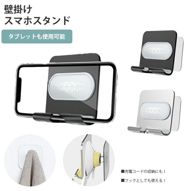 壁掛け スマホスタンド 壁フック スマホフック 貼り直し可能 スマートフォンスタンド スマホホルダー ウォール 壁用 粘着タイプ 角度調整 タブレットスタンド 首振り 壁置き マルチフック KAN000938