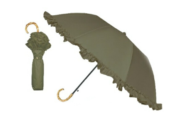 カミ217580 【オリジナル】折りたたみジャンプ傘【オリーブ】【フリル】【アンブレラ】【カサ】【日よけ】【日傘】【UV】【晴雨兼用】【レイングッズ】【遮熱遮光】【レディース】【女性】【雑貨】【グッズ】【かわいい】