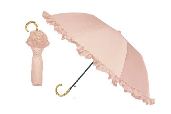 カミ217576 【オリジナル】折りたたみジャンプ傘【スモーキーピンク】【フリル】【アンブレラ】【カサ】【日よけ】【日傘】【UV】【晴雨兼用】【レイングッズ】【遮熱遮光】【レディース】【女性】【雑貨】【グッズ】【かわいい】