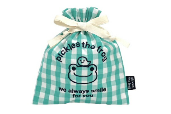 ナカ192479-24 【かえるのピクルス】【pickles the frog】巾着【ギンガム】【always smile】【ポーチ】【ケース】【小物入れ】【きんちゃく】【袋】【収納】【アウトドア】【子供】【キッズ】【雑貨】【グッズ】【かわいい】