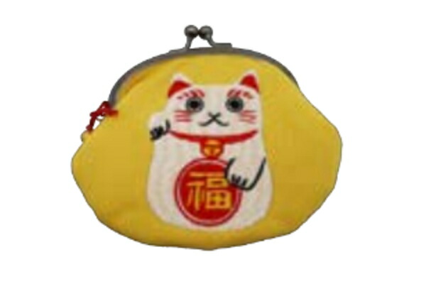 【送料無料】【オリジナル】がま口ポーチ【イエロー】【黄色】【招き猫】【ポーチ】【ケース】【小銭入れ】【コインケース】【収納】【雑貨】【グッズ】【かわいい】