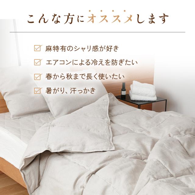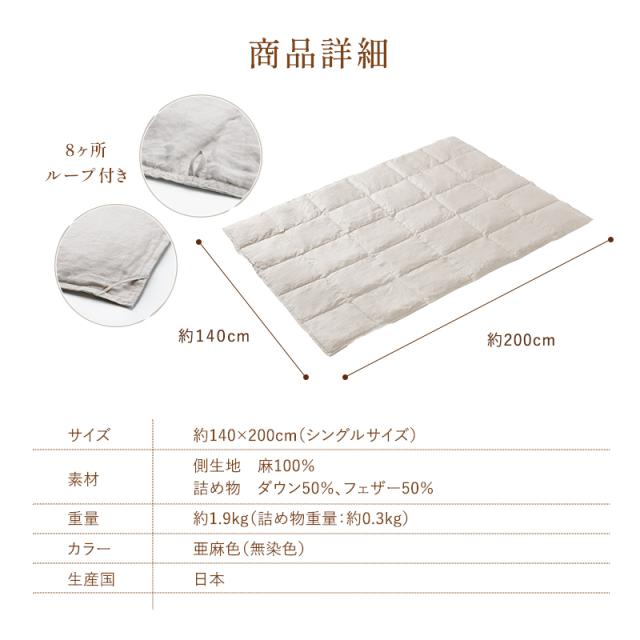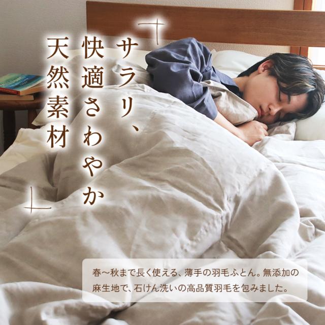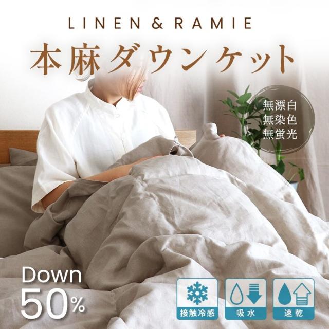 【日本製/洗える】本麻ダウンケット シングル【リネン&ラミー×羽毛】夏布団 肌布団 洗濯可能 冷房対策 冷え防止 接触冷感 ひんやり さらり ダウン50% フェザー50% 麻100%生地 亜麻色 無蛍光 無着色 無漂白 無添加 吹き出し防止 安心 安全 石けん洗い