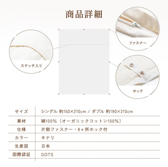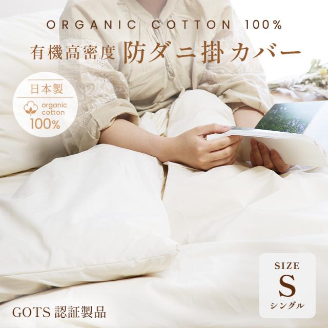 【ダニ通過0%】薬剤不使用 有機高密度防ダニ掛カバー シングル オーガニックコットン100% 日本製 ダニ対策 綿100% アレルギー 有機認証取得 安心安全 無染色 無漂白 無添加 無地 キナリ 生成色 シンプル ナチュラル 掛布団カバー 掛け布団カバー ほつれにくい 丈夫
