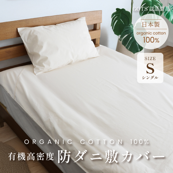 【ダニ通過0%】薬剤不使用 有機高密度防ダニ敷カバー シングル オーガニックコットン 日本製 ダニ対策 有機綿100% アレルギー 有機認証取得 安心安全 無染色 無漂白 無添加 無地 キナリ 生成色 シンプル ナチュラル 敷き布団カバー