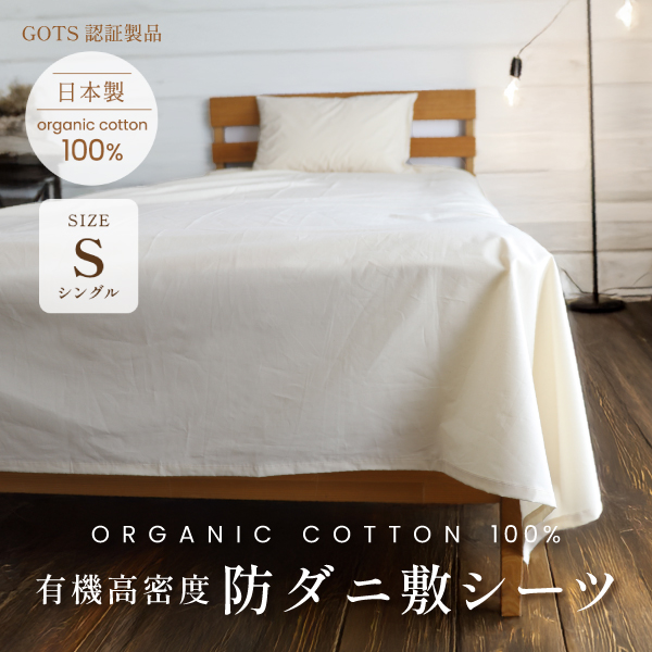 【ダニ通過0%】薬剤不使用 有機高密度防ダニ敷シーツ シングル 一枚布タイプ オーガニックコットン 日本製 ダニ対策 綿100% アレルギー 有機認証取得 安心安全 無染色 無漂白 無添加 無地 キナリ 生成色 シンプル ナチュラル 敷き布団カバー