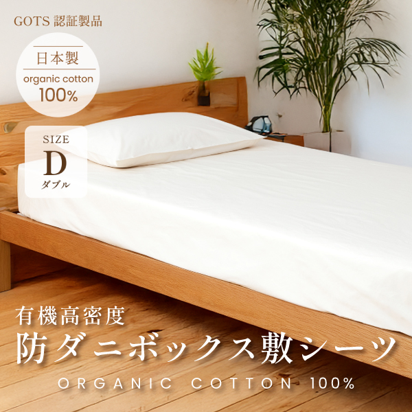 【ダニ通過0%】薬剤不使用 有機高密度防ダニボックス敷シーツ ダブル 厚さ10〜30cmのマットレス対応 オーガニックコットン100% 日本製 ボックスシーツ ベッドシーツ マットレスカバー 綿100% アレルギー 安心安全 無染色 無漂白 無添加 無地 キナリ 生成色