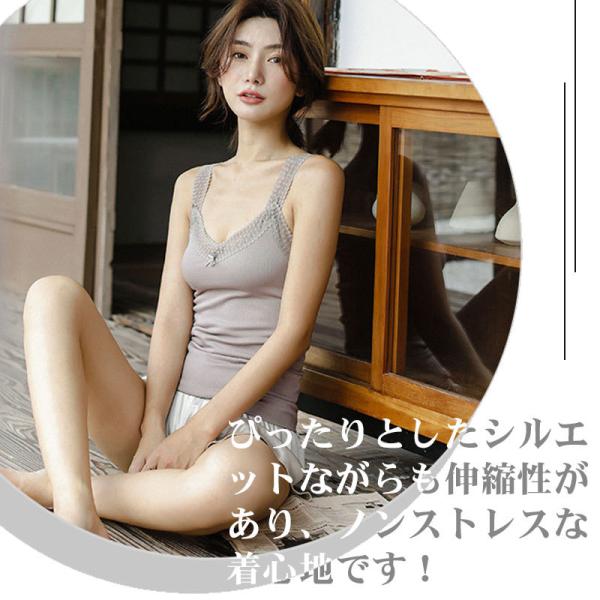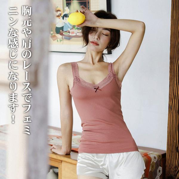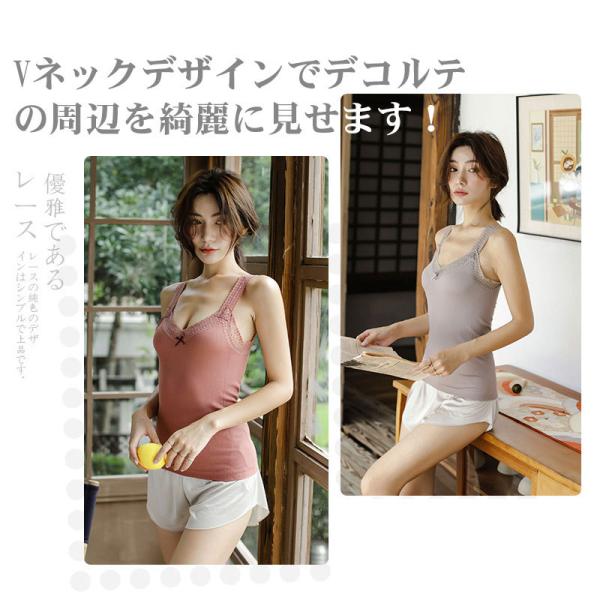 レースキャミソール Vネック トップス キャミソール タンクトップ レディース キャミ Vネック 胸元レース 重ね着 トップス インナー タンクトップ 大人 キャミソール インナー 春 夏 レース タンクトップ レディース vネック ノースリーブ トップス 重ね着 フィット 部屋着 肌着 下着 無地 シンプル おしゃれ かわいい セクシー 華奢に仕上げた肩紐もレディライクな印象に。