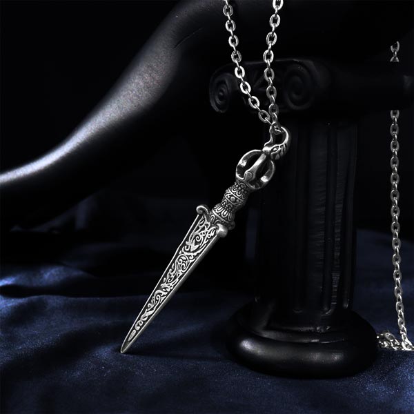 このネックレスは、大胆で個性的なデザインが魅力の一つです。オベリスク(剣型)のペンダントは、勇ましい印象を与え、存在感を放ちます。 トライバルデザインは、古代の民族の文様をモチーフにし、力強くも神秘的な雰囲気を醸し出します。