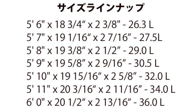 サイズ選びの選択肢としては、普段愛用するボードよりも約2インチ短く乗るのがおすすめです。