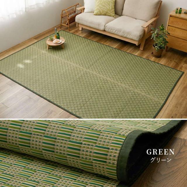 い草ラグ カーペット 江戸間 6畳用 裏貼りあり 若月 染めい草 市松柄 おしゃれ 和モダン 畳の上敷き 畳の上に敷くもの ござ 和室 洋室