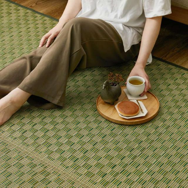 ●濃いめの染めい草を使った和モダンでおしゃれな、市松柄のい草カーペット。
