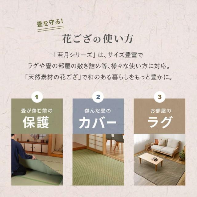 ●「若月シリーズ」は、お部屋のラグとしてや、畳を保護する上敷きとしてなどの豊富なサイズバリエーションに、用途にあわせて裏地の有無もお選びいただけます。