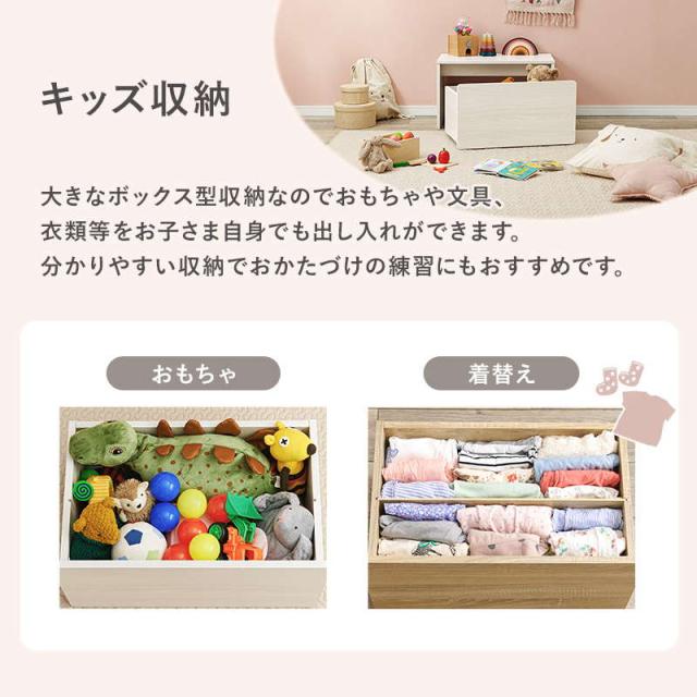 大きなボックス型収納なので、おもちゃや文具、衣類など様々なものの収納に便利です。