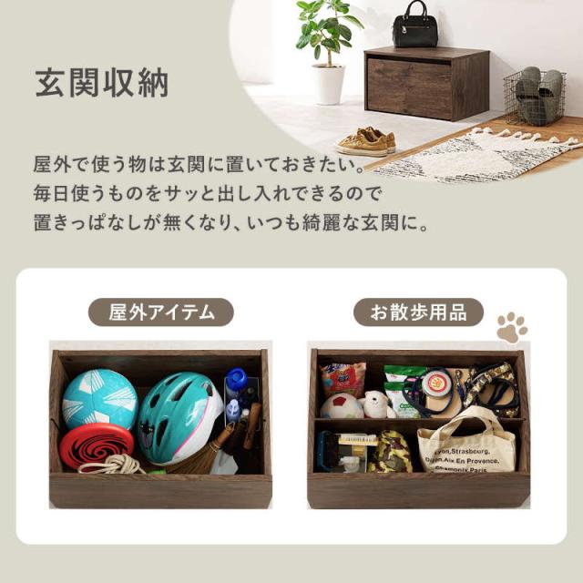 玄関では脱ぎ履きが楽に出来る腰掛けになるのと同時に、玄関小物や防災グッズもまとめて収納可能です。