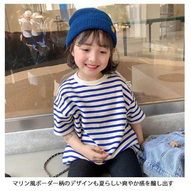 キッズ ボーダー柄Tシャツ 半袖 女の子 男の子 Tシャツ カットソー トップス オーバーサイズ 夏 子供 半袖Tシャツ ボーダー柄 マリンセーラー 女児 男児 ジュニアTシャツ 快適 送料無料