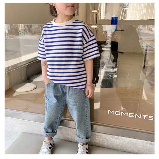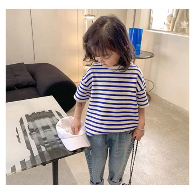 | 夏ファッションのマストアイテム、子供用半袖Tシャツ 吸湿性・通気性に優れて肌に優しい薄手綿素材を使用 ゆったりとしたサイズ感で快適感たっぷりの着心地&カジュアルな印象 マリン風ボーダー柄のデザインも夏らしい爽やか感を醸し出す レトロで上品な定番カラバリが用意され、どれも着まわし力高い ボトムスとの組み合わせも自由、幅広い場合で着こなせるアイテム | |