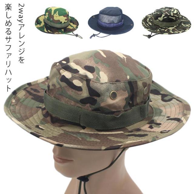 サファリハット 2way 迷彩/無地 ハット 帽子 サファリ メンズ レディース ユニセックス 男女兼用 大きいサイズ UV つば広 アウトドア UVハット つば広ハット 農作業 テンガロンハット ジャングルハット 登山用 トレッキング あご紐 あごひも 送料無料