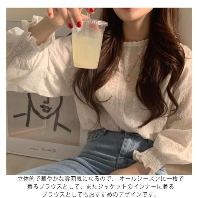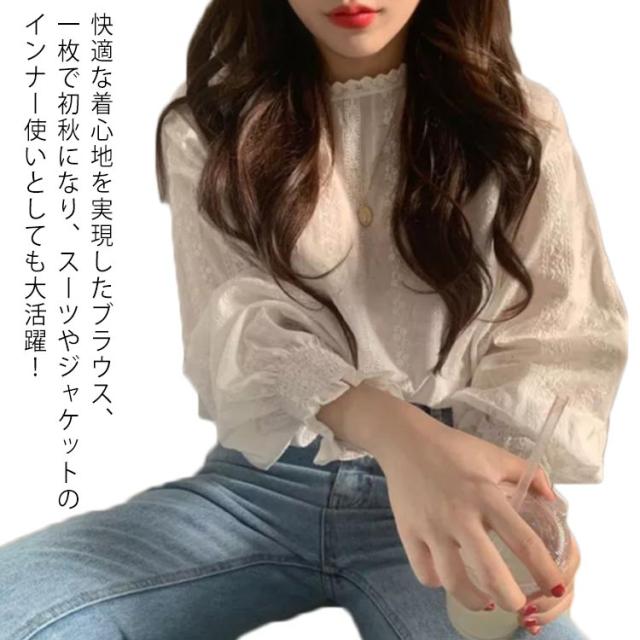 ボリューム袖 ブラウス レディース レース レースブラウス フリルシャツ パフスリーブ 透け感 長袖 チュール フリル襟 可愛い フェミニン 大人 女性 トップス 無地 カジュアル きれいめ ファッション 秋 春 通勤 オフィス 送料無料