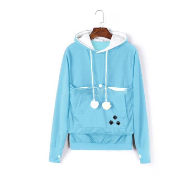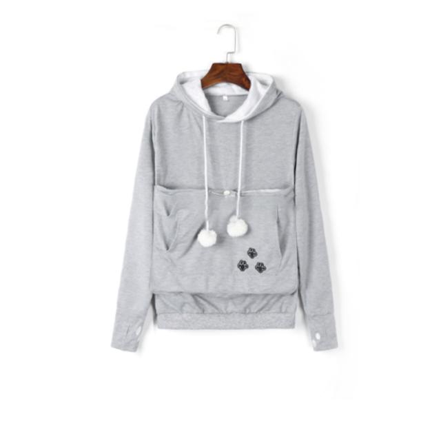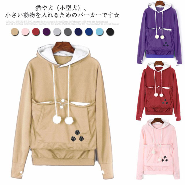 | 猫や犬(小型犬)、小さい動物を入れるためのパーカーです☆ 入れたまま移動出来るので抱っこ紐やスリング代わりとしても。 猫ちゃんを入れたまま立ち上がることはもちろん出来ますし、ポケットが猫ちゃんの体を支えてくれるので、両手が自由! 子猫から5キロ程度の成猫まで幅広く対応。 ポケットに入ったままボンボンで遊ぶのがたまらにゃい! あくまでも猫ちゃん(ワンちゃん)を入れたいがためのパーカーです^^ このパーカーで、愛猫愛犬といつも一緒♪ | |