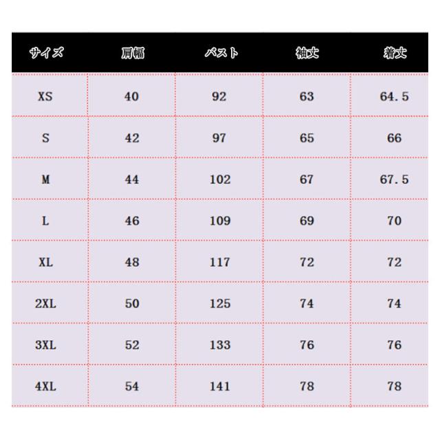 | サイズ | XS S M L XL 2XL 3XL 4XL |